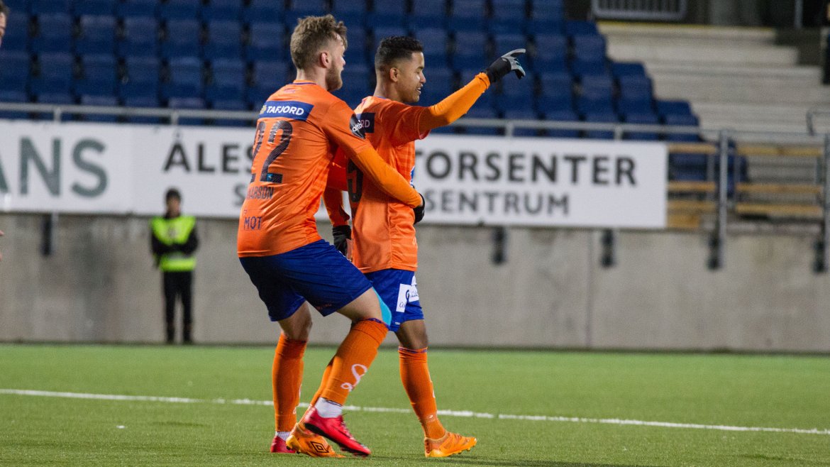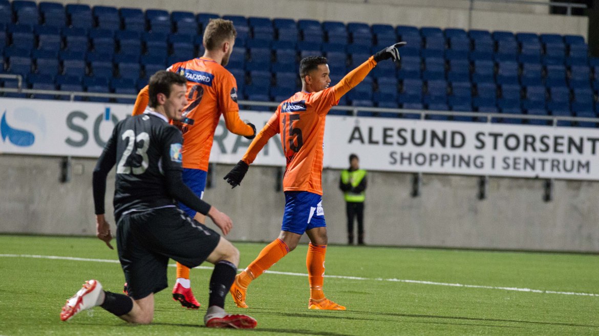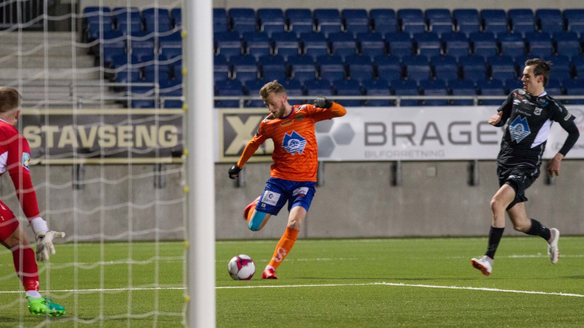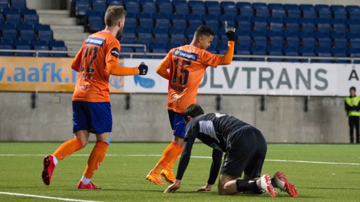 Brattvåg åpnet bra, og ofte ble tempoet til de gule og blå en liten utfordring for AaFK. Gjestene var farlig frempå etter sju minutter, men skuddet fra Haakon Leine strøk AaFK-keeper Tarjei Omenås’ venstre stolpe. Bare tre minutter senere fikk Vebjørn Hoff relativt god tid. 21-åringen takket for sjansen, og måket inn 1-0 fra 16 meter. Ikke lenge før pause gikk Holmbert Fridjonsson i bakken etter en duell med Brattvåg-keeper Neydson da Silva. Islendingen satte straffen sikkert, og dermed gikk de oransje krigerne til pause med 2-0.