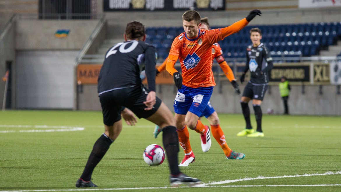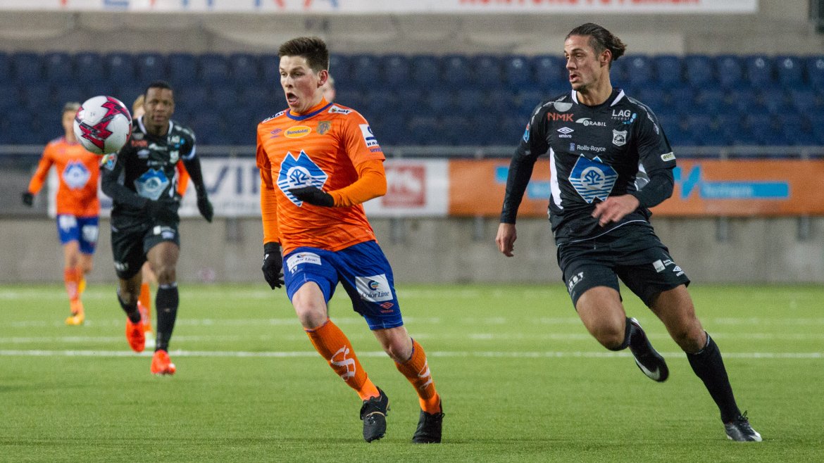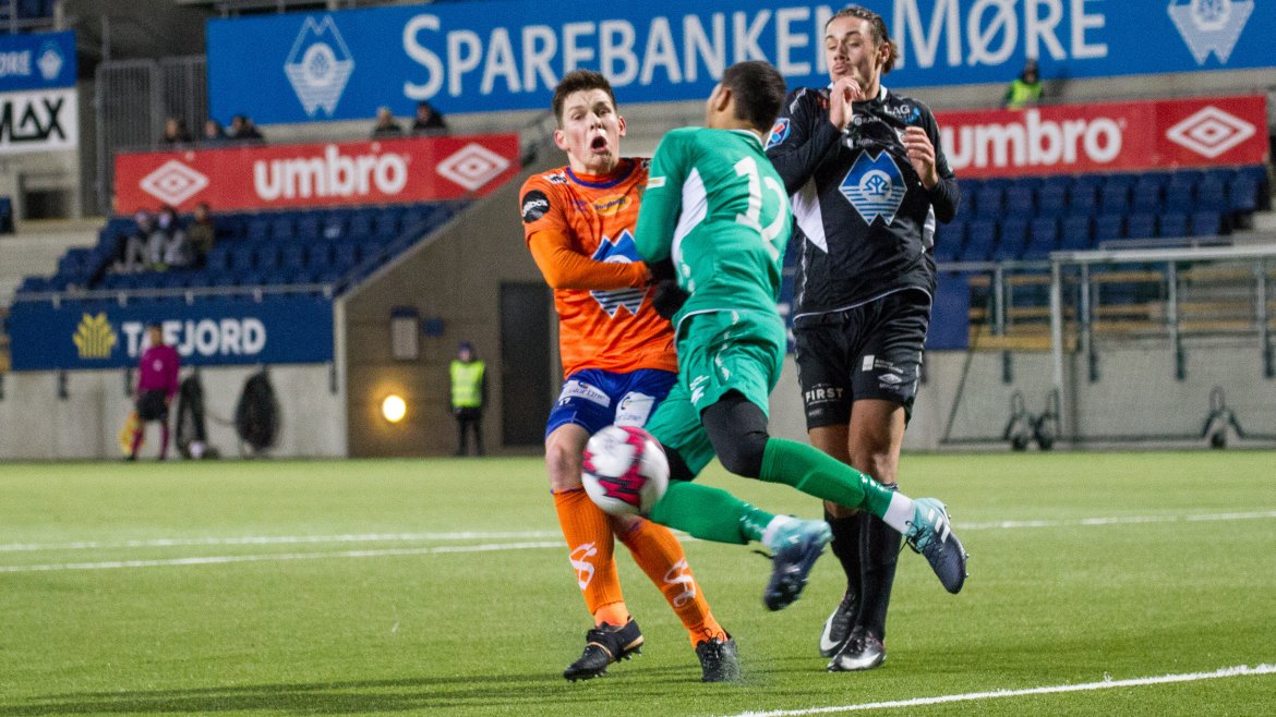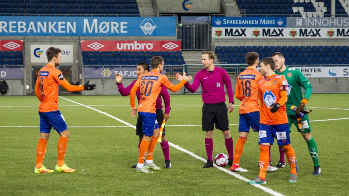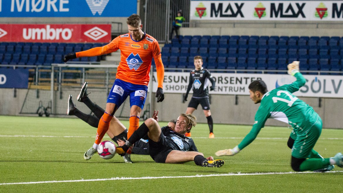 Brattvåg åpnet bra, og ofte ble tempoet til de gule og blå en liten utfordring for AaFK. Gjestene var farlig frempå etter sju minutter, men skuddet fra Haakon Leine strøk AaFK-keeper Tarjei Omenås’ venstre stolpe. Bare tre minutter senere fikk Vebjørn Hoff relativt god tid. 21-åringen takket for sjansen, og måket inn 1-0 fra 16 meter. Ikke lenge før pause gikk Holmbert Fridjonsson i bakken etter en duell med Brattvåg-keeper Neydson da Silva. Islendingen satte straffen sikkert, og dermed gikk de oransje krigerne til pause med 2-0.