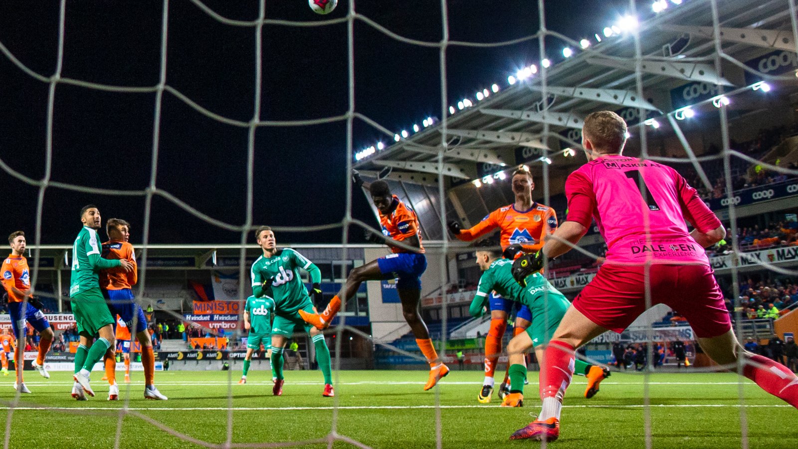 Sju minutter ut i andre omgang skjedde det som ikkje skjedde i den første. Ballen fikk nettkjenning. Et perfekt slått frispark, elegant svinget inn av Oddbjørn Lies silkefot, møtte Pape Habib Gueyes pannebrask. Ballen gikk i en perfekt bue over Egil Selvik i Nest-buret. 1-0!