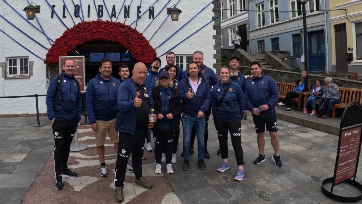 Av tidligere erfaringer, reiste vi til Bergen dagen før turneringen startet for å unngå å ankomme for sent til innmarsj og avspark i første kamp.