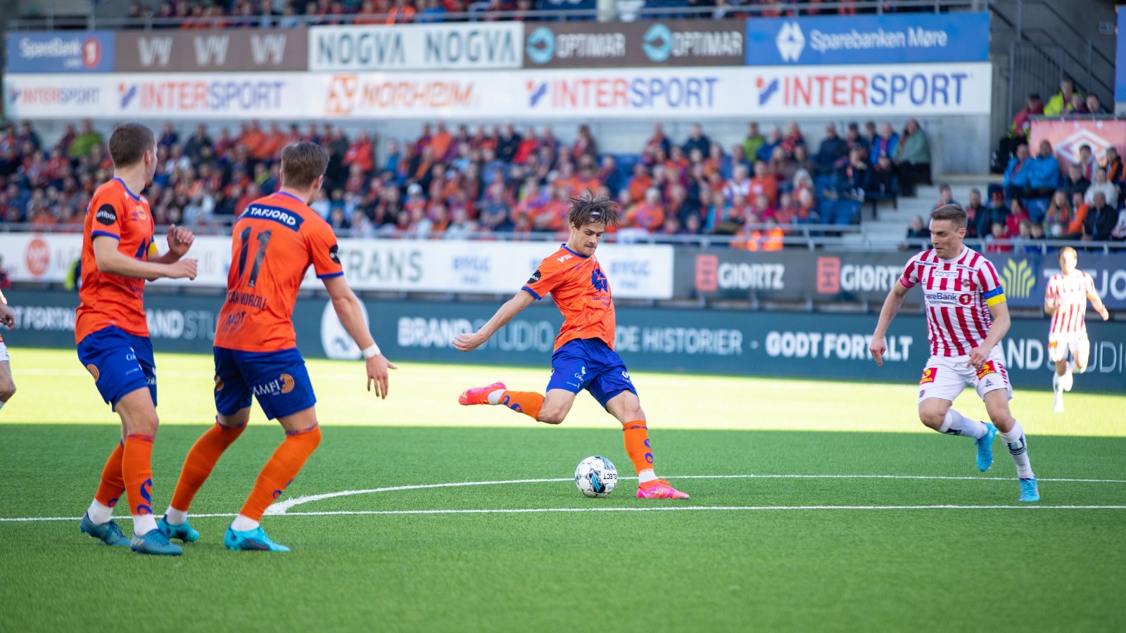 Tre minutter på overtid kunne det fort stått 3-1. Kristoffer Ødemarksbakken løftet ballen over keeper og en forsvarsspiller, men den gikk i tverrliggeren.